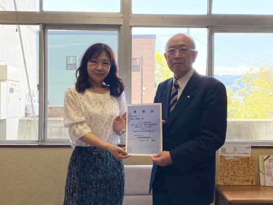 塚越真由美は、4月21日、昭和村役場で、堤盛吉村長より「やさい王国昭和村ふるさと大使」委嘱書を授与されました。