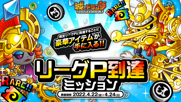 株式会社アソビズム(本社:東京都千代田区、代表取締役:大手智之)は、App Store・Google Playにて好評配信中の『城とドラゴン』で、「リーグ」および「リーグP到達ミッション」を2022年4月22日(金)より開催いたします。