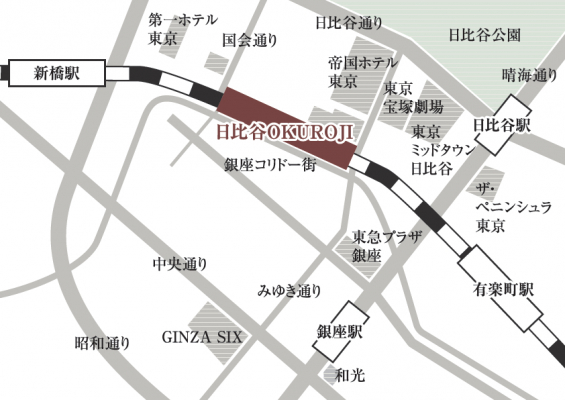日比谷OKUROJIは2020年9月、有楽町駅~新橋駅間の歴史ある煉瓦アーチ高架橋が特徴的な高架下空間に開業した商業施設で、“通な大人の通り道”をコンセプトとして飲食、ファッション、雑貨など、こだわりの大人のためのショップが集まっています。この煉瓦アーチ高架橋は、ベルリンの高架橋をモデルとし、ドイツ人技師の指導を受けながら、腕利きの職人たちの丁寧な手仕事により作られました。1910年より使用が開始されたこの煉瓦アーチは、100年以上経った今もなお現役の高架橋として日々鉄道の運行を支える、歴史的建造物です。