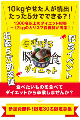 Belle Lus株式会社(所在地: 愛知県名古屋市中村区)の代表取締役でもあり、保健師・ダイエット講師として活躍する松田リエ初の著書『ずぼら瞬食ダイエット:-12キロのカリスマ保健師が考案!』(小学館)が発売2ヶ月で累計5万部を突破致しました。突破を記念しまして30名限定で「出版5万部突破記念イベント」を開催致します。