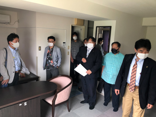 4月19日の視察では「全国若手市議会議員の会」に所属する市議会議員7人がコールセンター業務の様子や、ホテルの部屋を利用したコールスタッフの寮生活を見学し、アクトプロ社員と意見交換を実施しました。