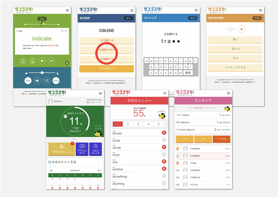 「タンゴスタ!」は、学校・塾等での英単語学習を支援するICTサービスです。学習の効率化と継続のサポートを通して生徒の英単語習得を促進し、同時に、テスト実施や評価管理の自動化によって指導者の負担を軽減します。
