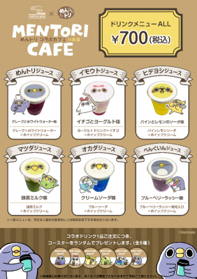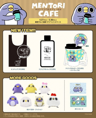 「めんトリ」のコラボカフェが「新宿マルイ本館」1Fのイベントスペースにて期間限定で開催します。今年2月に「新宿マルイアネックス」にて行われたポップアップストアに続き、今回もコラボカフェ限定の新商品が登場!更に、ファンの方に楽しんでいただけるように、コラボカフェならではの「めんトリ」の「コラボドリンク」や、ドリンクの購入特典として各キャラクターの「限定コースター」もご用意しております。その他にも、通常ネットショッピング「めんトリストア」のみでの販売となっている商品も今回に限り、店舗販売を致します。直接手に触って、リアル店舗で購入できる特別な機会に是非、手にとってご覧くださいませ。