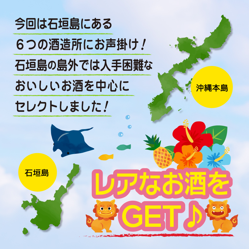 第1弾のころから「石垣島編をやってほしい」という多くの声をいただき、石垣島本島内にある6つの酒造所すべてにお声かけして『特に石垣島の人たちに愛されたお酒』を厳選しました。