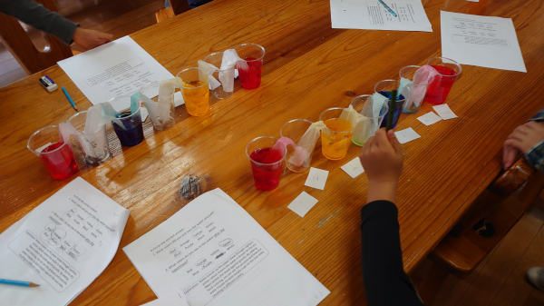 4月28日(木)と5月12日(木)には、渋谷区内小学校の放課後クラブにて、無料体験会を実施。「Traveling Water (毛細管現象の実験)」をテーマに、実験を行いました。子どもたちは色とりどりに変化していく水の様子に興味津々。講師に活発に質問する様子があちこちで見られました。