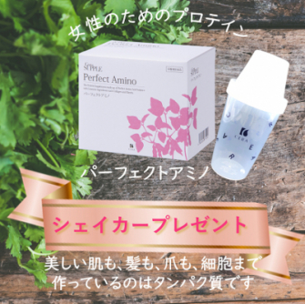 女性のためのプロテイン「パーフェクトアミノ」のご購入で、今だけシェイカープレゼント中です!