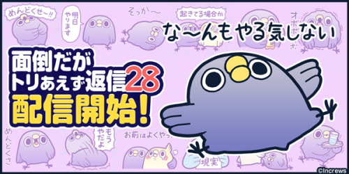 株式会社インクルーズ(東京都渋谷区、代表取締役社長 山﨑 健司)は、LINE株式会社(東京都新宿区、代表取締役社長 出澤 剛)が運営するコミュニケーションアプリ「LINE」内のスタンプショップにて、LINEスタンプ「面倒だがトリあえず返信28」を2022年4月28日(木)に配信開始致しました。