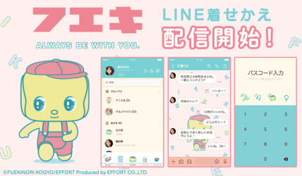 懐かしい雰囲気を残しつつパステルカラーの優しい色合いとトーク画面の「フエキ」が可愛らしいデザインとなっております!是非LINE着せかえでも「フエキ」の世界をお楽しみください。