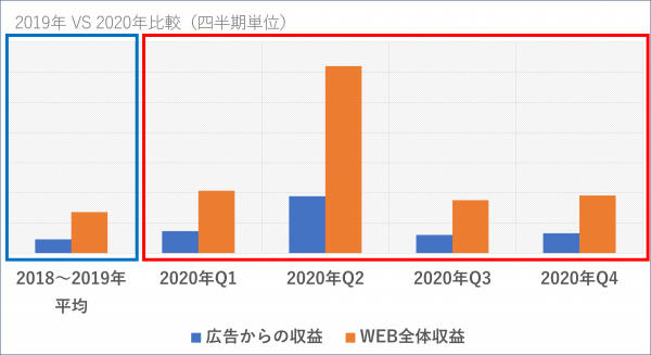 タオル美術館のチームメンバーとグラッドキューブのチームで丁寧に打ち合わせを重ねながら進めた甲斐もあって、2022年の第1四半期は繁忙期も追い風となり、 Web 全体の収益を拡大、広告からの収益も右肩上がりの状況です。