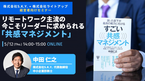 本セミナーでは、株式会社S.K.Y. 代表取締役で中小企業診断士でもある中田 仁之氏にご登壇いただき、「共感・感謝・感動」をベースにした「共感マネジメント」による従業員の孤立化・会社の生産性低下を防ぐためのマネジメントスキルについて解説いただきます。