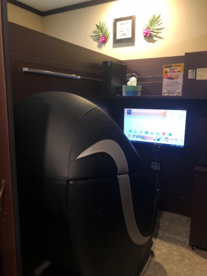 マッサージチェアとして業界で初めて採用した“フルフェイスフード”もポイントとなりました。複数人で楽しく過ごす利用者もいれば、1人の時間をゆっくりと過ごしたい、とプライベートな環境を求めて施設を訪れる方もいらっしゃいます。マッサージブースはすべて個室にはなっていますが、“フルフェイスフード”の利用により、1人のプライベート空間の演出をより高めることができます。
