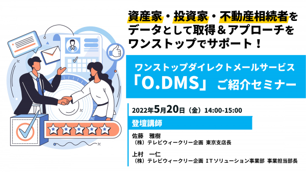 ・タイトル:資産家、投資家、不動産相続者をターゲットデータとして取得するノウハウ&ワンストップでアプローチする『O.DMS』ご紹介セミナー