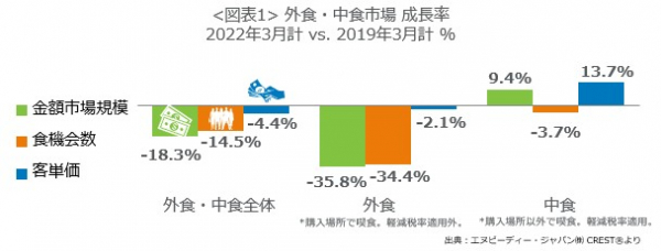 外食・中食市場情報サービス『CREST(R)*1』を提供するエヌピーディー・ジャパン株式会社(東京都港区、クリストス・クリストフォロー代表)は、外食・中食市場2022年3月の動向分析レポートを2022年5月11日に公表します。