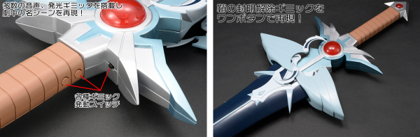 LEDによる発光ギミックにより刀身が眩い光を放ちます。