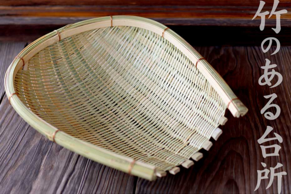 虎斑竹専門店 竹虎(運営:株式会社山岸竹材店)で片口当縁米揚げざるが新登場しました。片口当縁米揚げざるは、研いだお米を炊飯器等に入れやすいように口をつけた便利な竹籠です。片口部分の先端部分はUの字型になり、お米などを別容器に移しやすいように出来ています。昔からずっと編まれ続けてきた家庭の知恵が活きたデザインです。