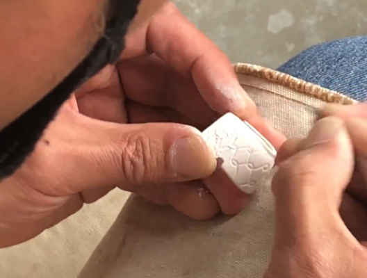 瀬戸物は「型取り」ののち、「焼き」を入れた時の収縮率が大きく、カートリッジ製品の筐体としては不向きとされましたが、JICOは独自のデザイン形状を愛知県瀬戸市の工房と制作、岐阜県土岐市織部焼の窯元と2年間に渡り収縮率の検討を重ねました。