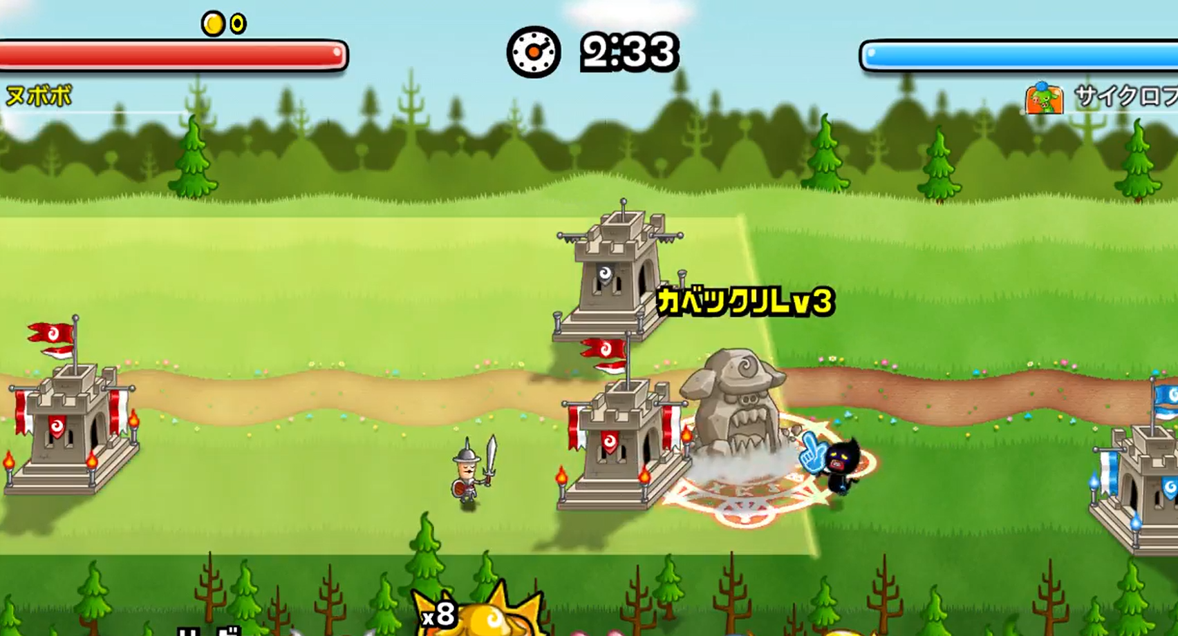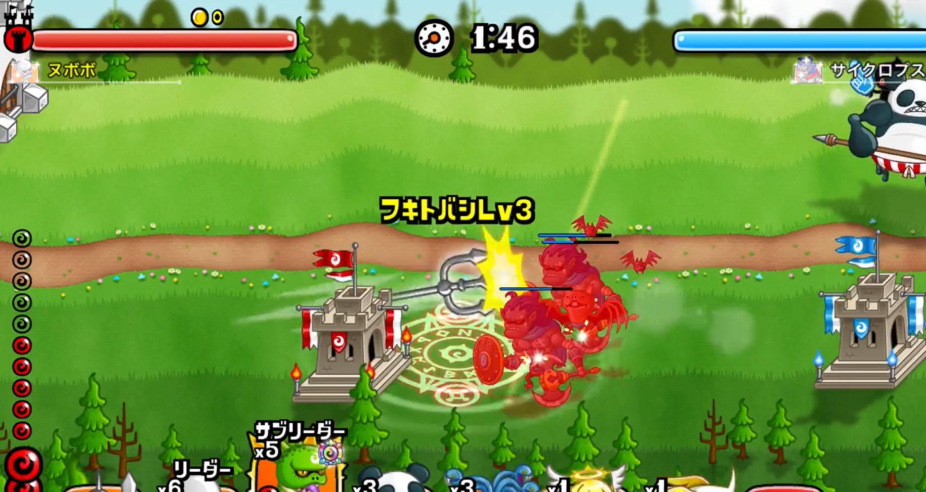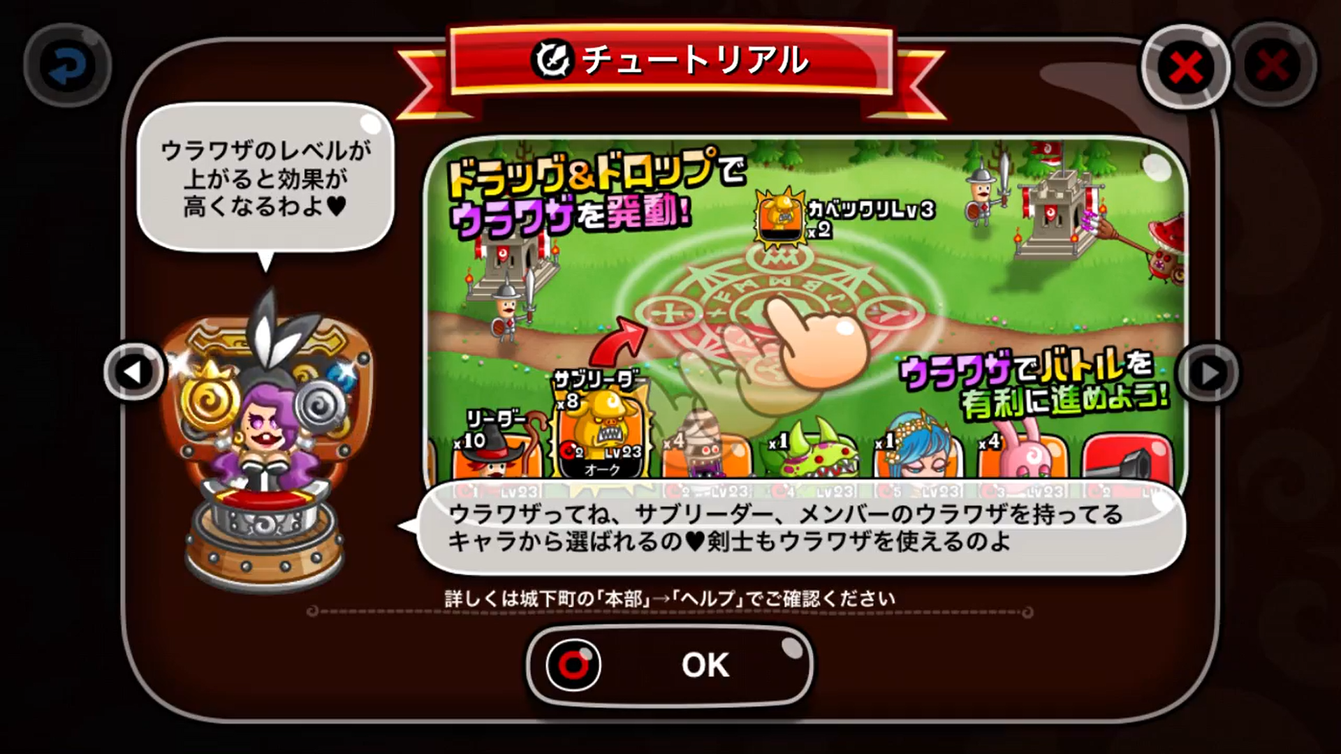 使用したいキャラアイコンをスワイプし、発動させたい場所で離すと「ウラワザ」を発動させることができます。