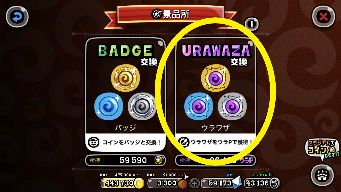 「ウラワザ」にはレベルが存在し、アップするごとに効果も上昇します。なお「ウラワザ」を取得したり、レベルアップさせるには“ドラゴンメダル”や“きびだんご”といったゲーム内アイテムが必要です。