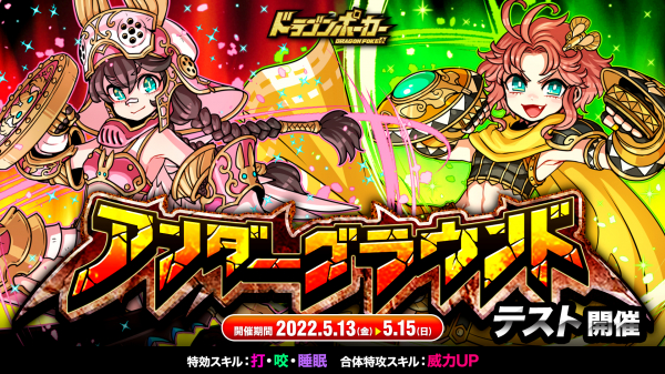 株式会社アソビズム(本社:東京都千代田区、代表取締役:大手智之)は、App Store・Google Playにて好評配信中のリアルタイム合体カードバトル『ドラゴンポーカー』で、2022年5月13日(金)より「アンダーグラウンド」をテスト開催いたします。