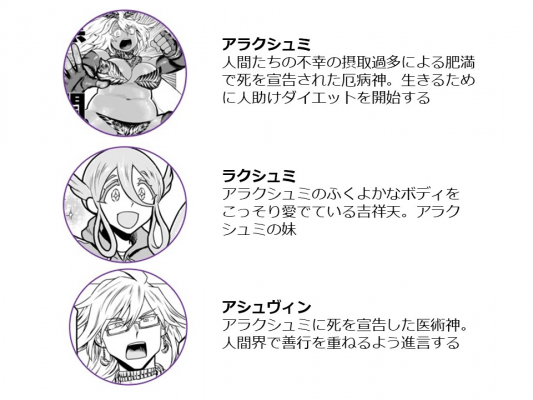 アラクシュミのほかにも健康面に問題を抱えた神も登場!ジレンマを抱える神たちによるほのぼの日常コメディを、ぜひのぞいてみてください。
