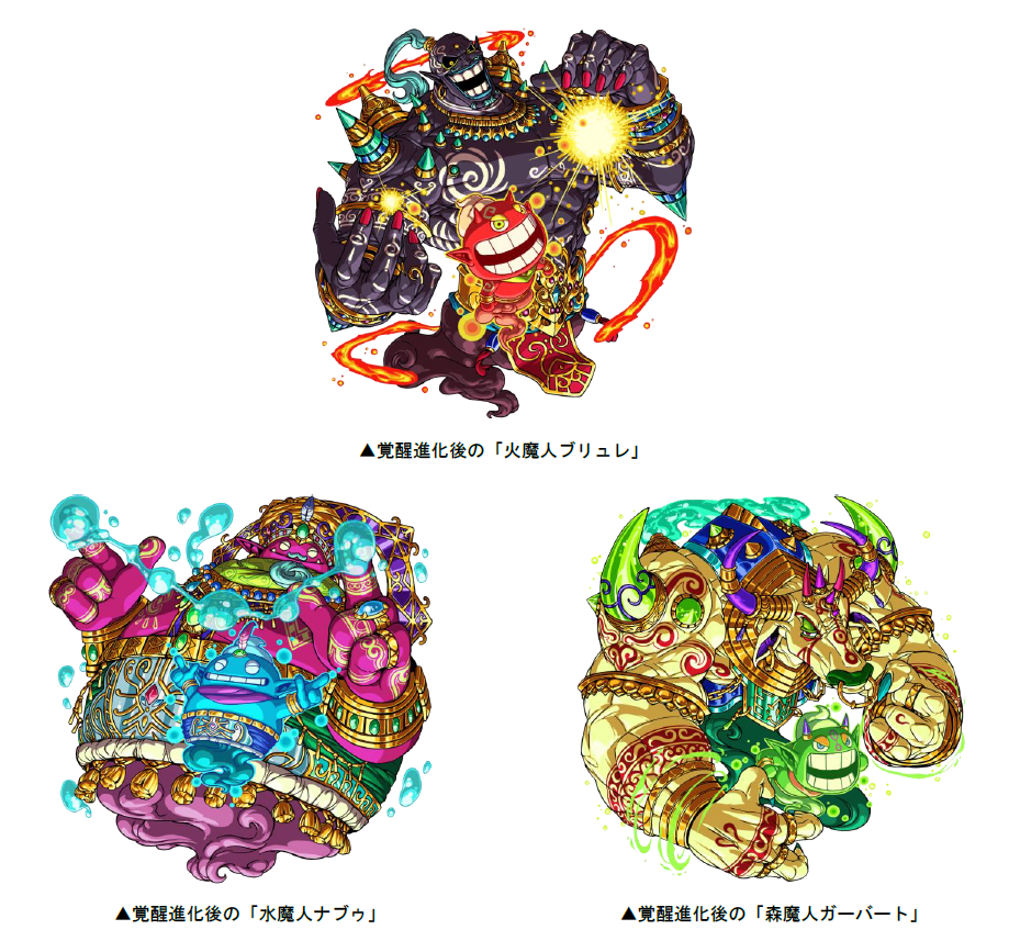 5月16日(月)より、復刻チャレンジダンジョン「魔人覚醒」を開催いたします。本ダンジョンでは、覚醒した「火魔人ブリュレ」「水魔人ナブゥ」「森魔人ガーバート」がボスモンスターとして日替わりで登場します。ダンジョンで覚醒進化素材を手に入れ、モンスターを覚醒させましょう!