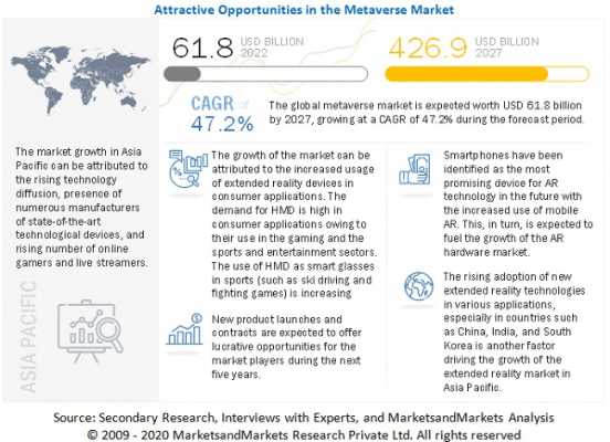 MarketsandMarketsはプレスリリースにおいて、世界のメタバース市場規模は2022年に618億ドル、2027年までには4,269億ドルに達し、予測期間中に年平均成長率(CAGR)47.2%で成長するとの予測結果を発表しました。