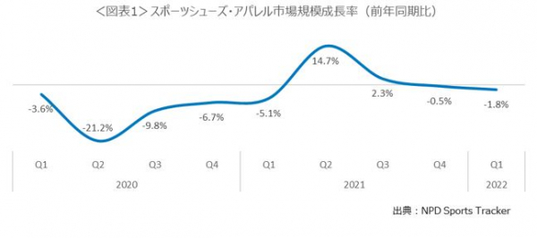 スポーツシューズ・アパレル市場規模、2022年1-3月は前年同期比1.8%減