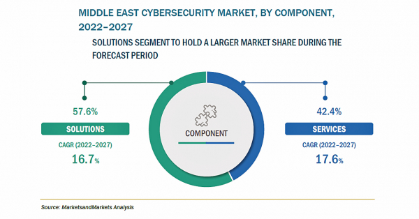 中東のサイバーセキュリティの市場規模は、2022年の203億米ドルからCAGR17.1%で成長し、2027年には447億米ドルに達すると予測されています。市場を促進する要因には、重工業分野でのサイバー攻撃の高度化、サイバー攻撃による金銭的損失や風評被害、政府の規制、デジタル化の進展によるサイバー攻撃の増加などが挙げられます。総括的なセキュリティ体制を確保するために必要な措置を事前に導入する必要性や、クラウドやIoTの技術的進歩により、垂直方向における潜在的なユースケースが強化されています。