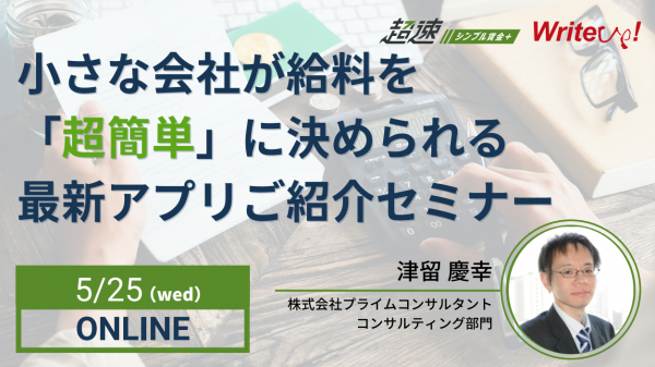 更にセミナー後半では同社が開発した小規模企業の給料、昇給決定をサポートするサービス「超速シンプル賃金プラス」をご紹介いたします。