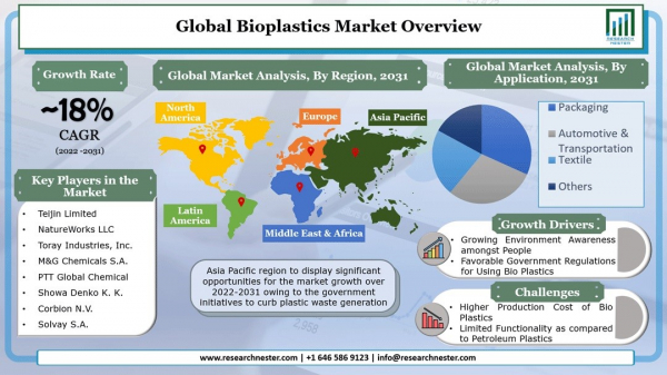 Research Nester Private Limitedは, バイオプラスチック市場の予測評価を提供する調査レポートを2022年5月 13日 に発刊しました。これは、バイオプラスチック市場の成長ドライバー、市場機会、課題、脅威など、いくつかの主要な市場ダイナミクス強調しています。