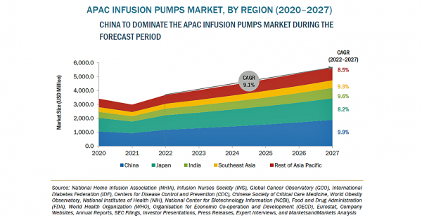 株式会社グローバルインフォメーションは、市場調査レポート「アジア太平洋の輸液ポンプ市場:製品別 (付属品 (専用、非専用)、デバイス (容積移送式、インスリン、シリンジ、歩行用))・技術別 (従来型、特殊)・用途別 (がん、糖尿病)・エンドユーザー別 (病院、在宅医療) の将来予測 (2027年)」(MarketsandMarkets)の販売を5月18日より開始いたしました。