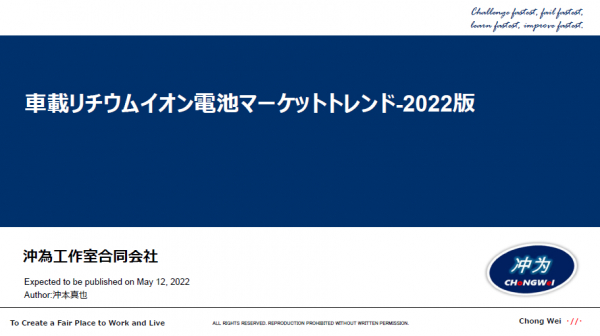 SEMABIZは沖為工作室の市場調査報告書「車載リチウムイオン電池マーケットトレンド-2022版」の販売を2022年5月19日に開始いたしました。
