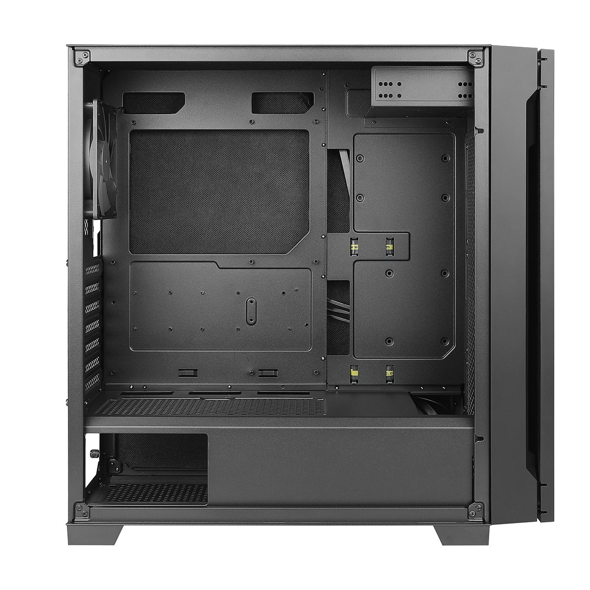 フロントパネルの120mmファン3基を含め、合計4基の120mmファンを標準搭載します。最大で6基のファンに対応し、PSUチャンバー上にファンを追加することで、静音性を確保しつつグラフィックスカードに潤沢なエアフローを送り込むことも可能です。
