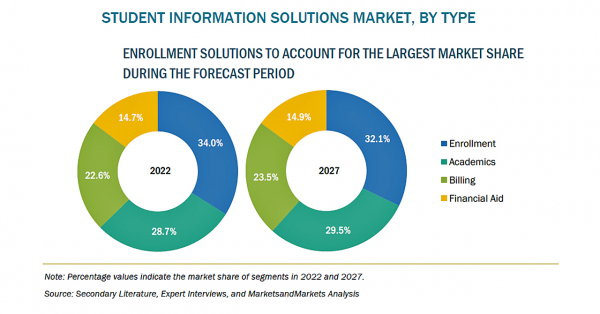 学生情報システムの市場規模は、2022年の102億米ドルからCAGR14.9%で成長し、2027年には205億米ドルに達すると予測されています。高等教育へのアクセスの向上が、市場成長の主な要因となっており、クラウドベースのシステムの採用も、学生情報システムの需要を押し上げると考えられます。