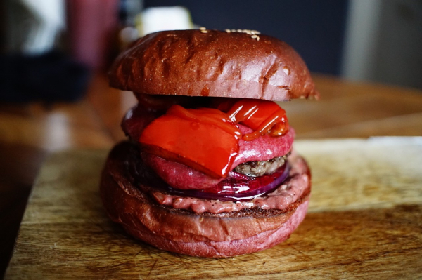 「ハインツ トマトケチャップバーガー」の開発は、店主がビジュアルだけでなくおいしさにもこだわり、材料を赤くするために人口着色料などは使用せず、野菜のビーツを濾したもので色を付けるなど、試行錯誤を重ねて完成したこだわりの逸品です。