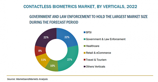 非接触型バイオメトリクスの市場規模は、2022年の197億米ドルからCAGR15.1%で成長し、2027年には398億米ドルに達すると予測されています。同市場の成長の主な原動力としては、パンデミック後の技術の利用拡大、ソリューションの採用を支援する政府の取り組み、タッチベースシステムによるユーザーのセキュリティ懸念と衛生問題の拡大などが挙げられます。