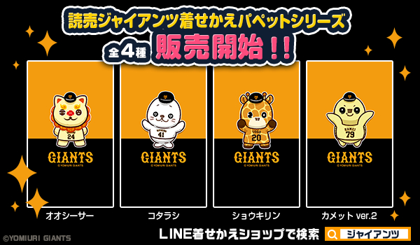 大人気販売中の「読売ジャイアンツ」選手パペットLINE着せかえシリーズに、新たに4点が配信開始!