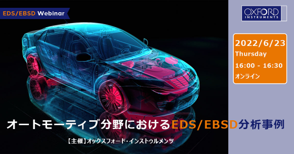 オックスフォード・インストゥルメンツ株式会社 分析機器事業部は、2022年6月23日(木) 16時から「オートモーティブ分野におけるEDS/EBSD分析事例」のウェビナーを開催します。