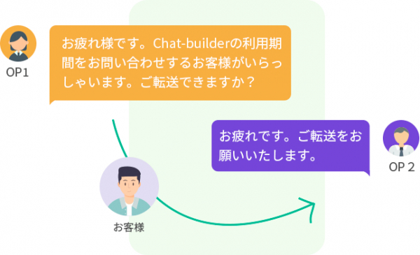 他のオペレーターにチャットを転送し対応を引き継いでもらうことが可能です。