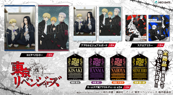 TVアニメ『東京リベンジャーズ』より「B2タペストリー」「アクリルビジュアルボード」「スクエアミラー」「ネームタグ風アクリルチャーム 第2弾」の発売が決定いたしました!