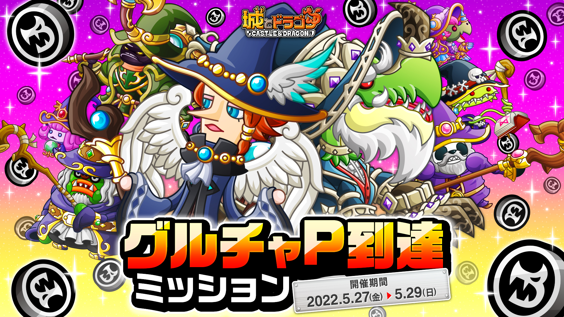 5月27日(金)から「グルチャリーグ」と予選を勝ち抜いた強豪グルチャによる「グルチャカップ本戦」を開催いたします。また、既定のグルチャPに到達すると豪華アイテムがもらえる「グルチャP達成ミッション」も併催されます。グルチャのメンバーと一緒に、豪華報酬を狙いましょう!