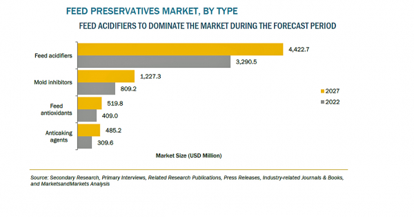 世界レベルでの家畜生産の需要急増は、畜産業にプラスの影響を与えています。急激な食肉消費、肉・乳製品ニーズの高まり、卵の需要増などが市場を牽引しています。食品産業における家畜の需要増は、飼料用防腐剤の需要を著しく高めています。