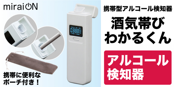 日用雑貨、スマホアクセサリー、カー用品、ペット用品などの企画・販売を行うミスターカード株式会社(本社:埼玉県川口市)は、息を吹きかけ式&ストローの2WAYで衛生的にアルコール濃度を計測できる!携帯型アルコール検知器「酒気帯びわかるくん」を2022年7月8日(金)から販売いたします。ホコリからセンサーを保護するフタ収納式。持ち運びに便利で紛失しにくいオリジナル専用ポーチ付きで、すぐ使える記録用紙のフォーマットを同梱しています。