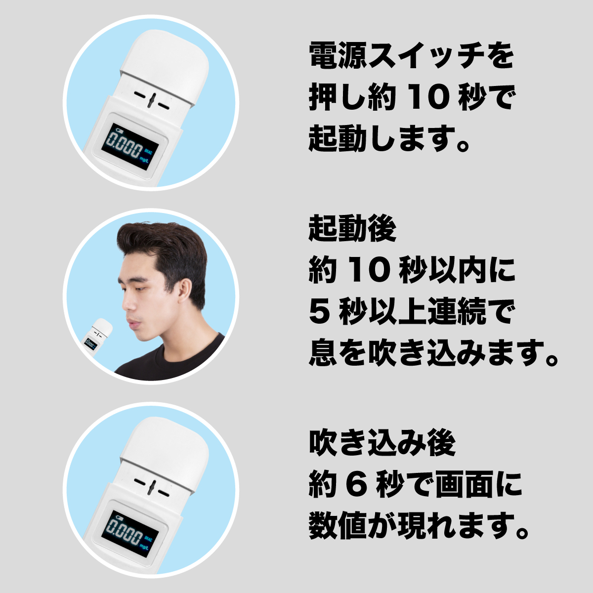 ・ 息を吹きかけるだけ!呼気中のアルコール濃度を確認