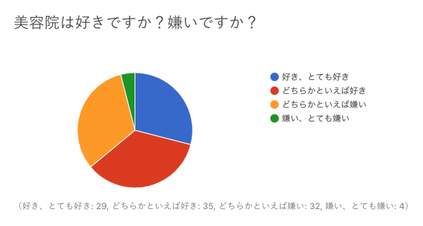 美容院を好きか嫌いかについて、「好き」が64%、「嫌い」が36%と、「好き」が6割を超える結果となりました。