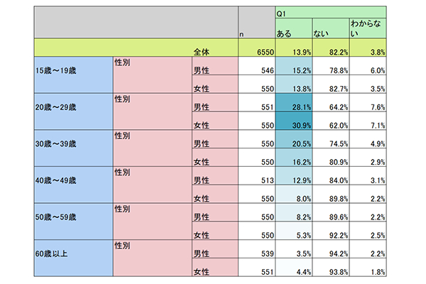 インターネットリサーチを利用した調査を実施し以下のような結果がでました。