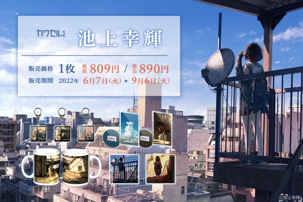2018年12月に投稿され1.3万RT・7.3万いいね(2022年5月現在)を獲得した大人気イラスト『なんでもない景色』を使用したS賞:タペストリーをはじめ、「池上幸輝」さんしか創り出せないアンニュイな雰囲気を存分にお楽しみいただけるラインナップとなっております。