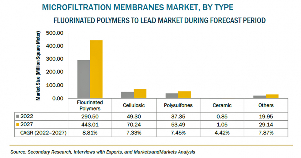 精密ろ過膜の市場規模は、2022年の12億米ドルからCAGR8.9%で成長し、2027年には18億米ドルに達すると予測されています。アジア太平洋、中東・アフリカ、南米などの新興国における精密ろ過膜の需要増加や、水処理・廃水処理に関する意識の高まりや、水不足の深刻化が、精密ろ過膜市場を牽引する要因となっています。