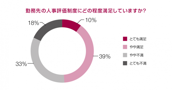 人事評価:満足のうち51%「評価が給与と結びついている」、不満のうち63%「評価基準が不明瞭」