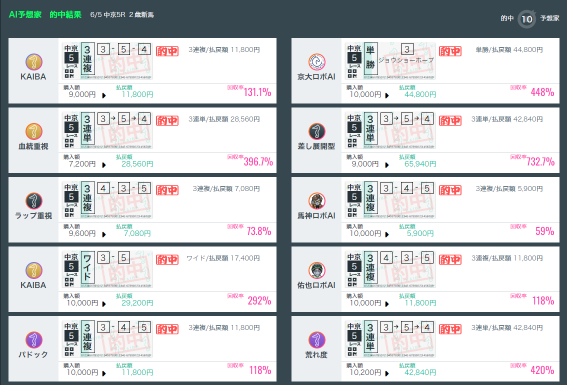 「結果/払戻」ページにAI予想家の的中結果情報追加